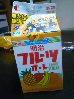 (理由は、銀魂と明/治がコラボしてるのを母上が知って、「買わねば…!」とコンビニに走ったが、フルーツオレしか残っていなかったため)